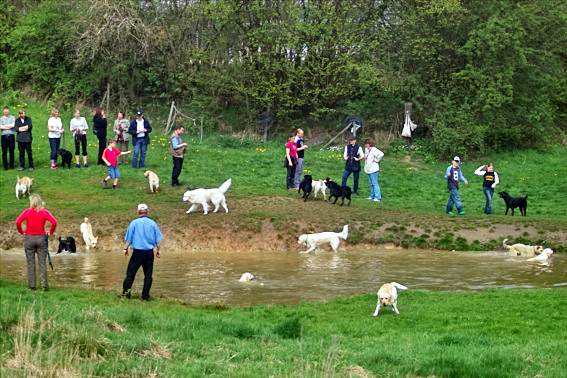 Am Wasser... Auch der Teich war an diesem schwül-warmen Tag heiß begehrt. Während Frauchen und Herrchen Klönschnack hielten, konnten die Vierbeiner endlich in Ruhe ihrer größten Leidenschaft nachgehen: Schwimmen und Toben, was die Ausdauer her gab. Die Hunde waren dankbar für eine Abkühlung und es wurde reichlich gespielt. Ob Bälle holen oder mit neuen Kumpels spielen, es gab alles, was das Hundeherz begehrte. Und das Beste: In diesem Gewimmel von Hunden war es egal, ob groß oder klein, alt oder jung oder verschiedene Rassen aufeinander trafen. Es verlief alles ruhig und ohne jegliche Streitereien. Aber seht selbst, denn die Bilder sagen hier mehr als tausend Worte... Wir freuen uns schon auf’s nächste Mal... Nadja mit Lamiro