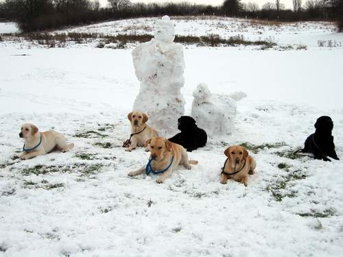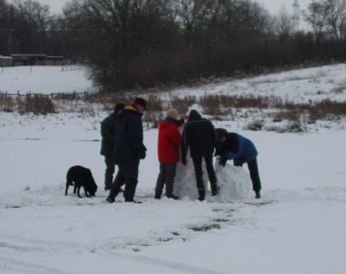 Gemeinsamer Bau eines Schneemanns.
